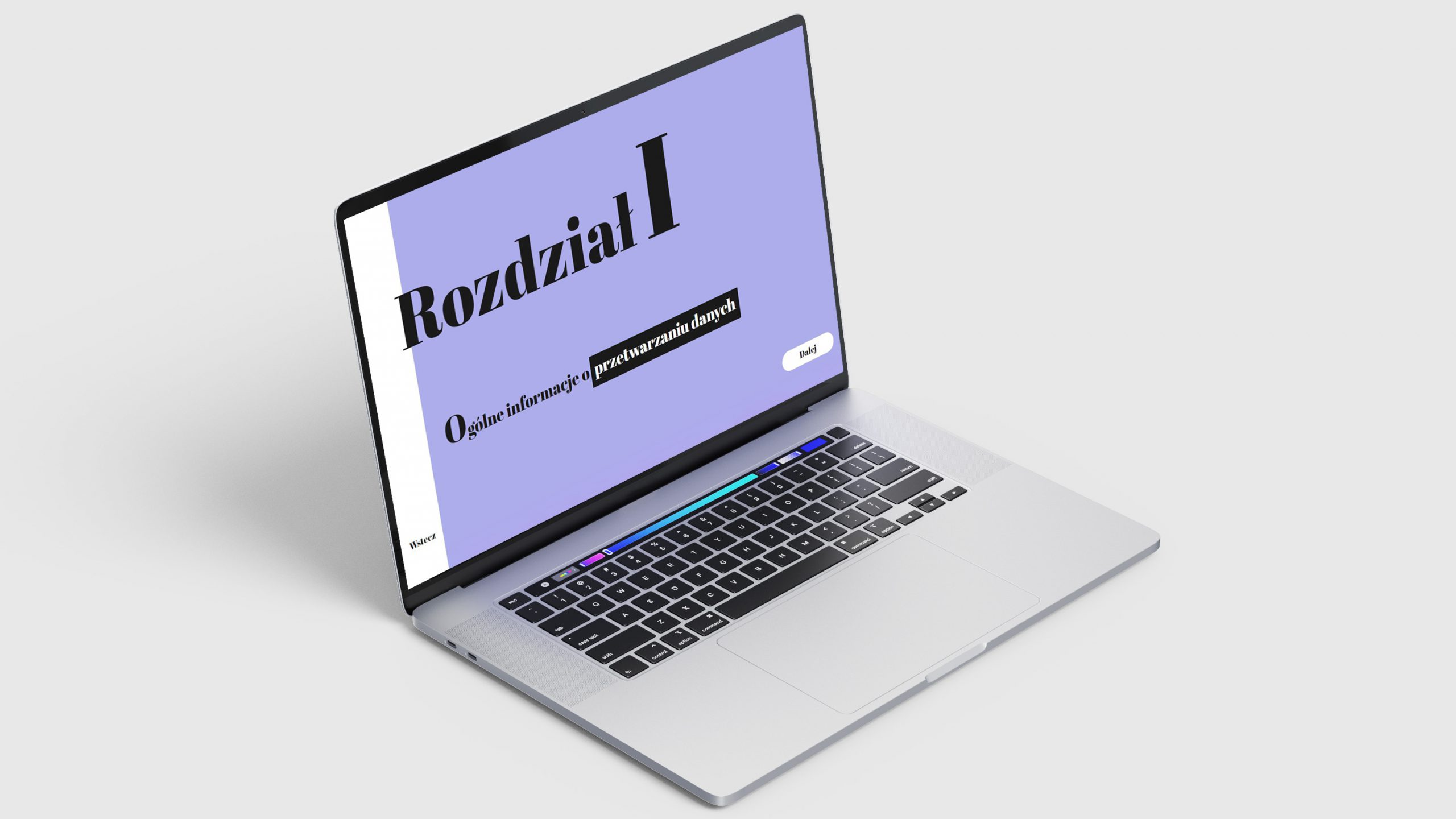 W tym projekcie zdecydowałem się na wyraziste zabiegi z fontem. Wybrałem szeryfowy krój pisma, który świetnie współgra z prawnymi pojęciami.